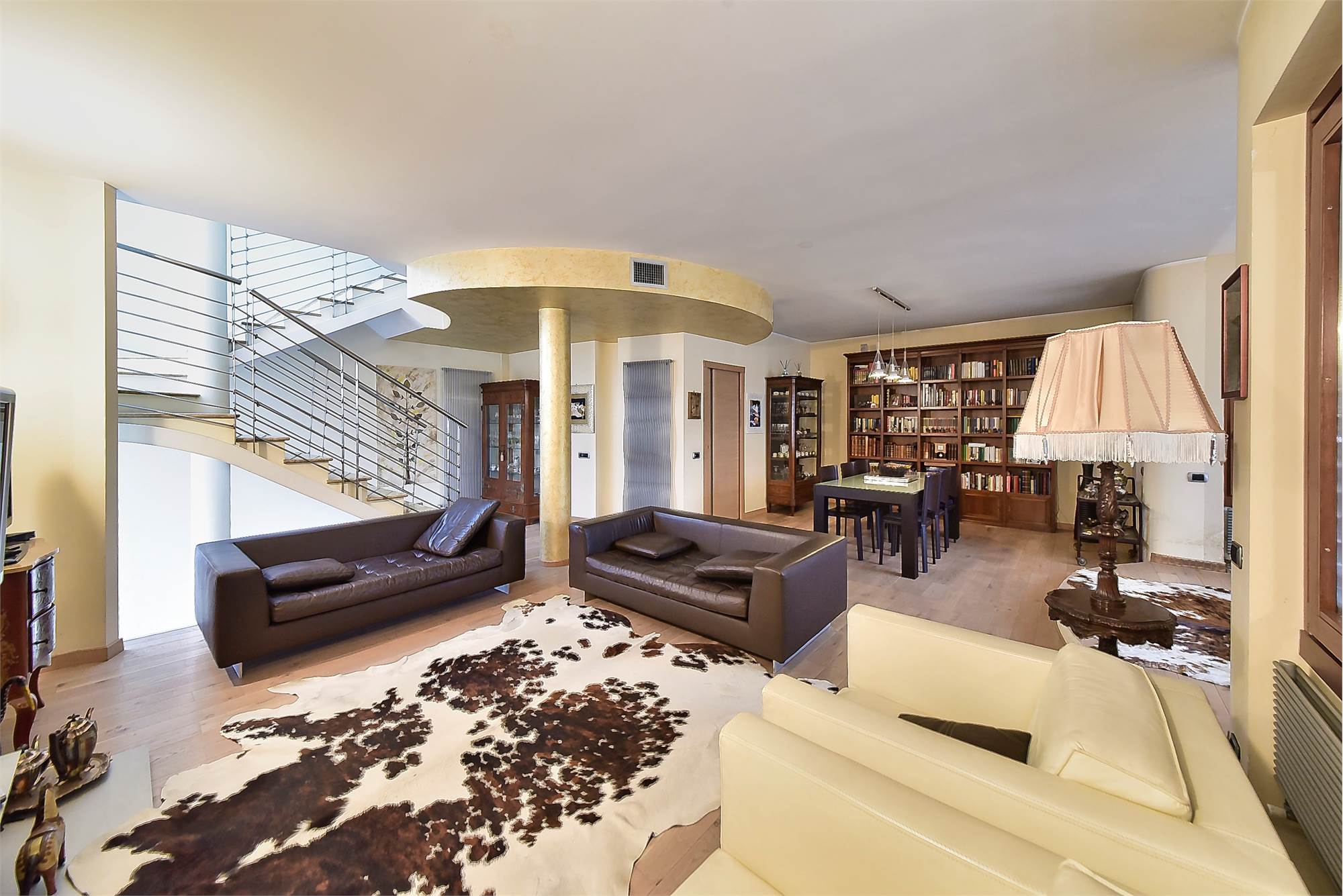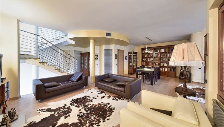 Al piano rialzato, dove si accede tramite affascinante scala di design, si sviluppa un soggiorno triplo con affaccio sul terrazzino e il secondo bagno ed è possibile ricavare un' ulteriore stanza/ studio in relazione alle proprie esigenze.