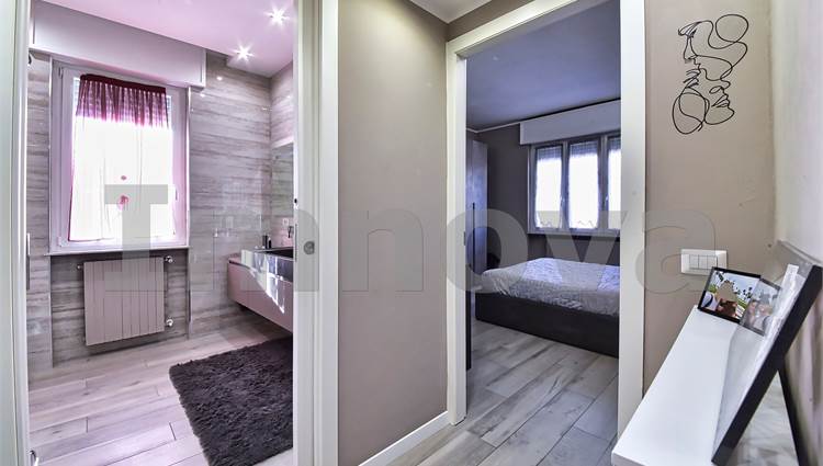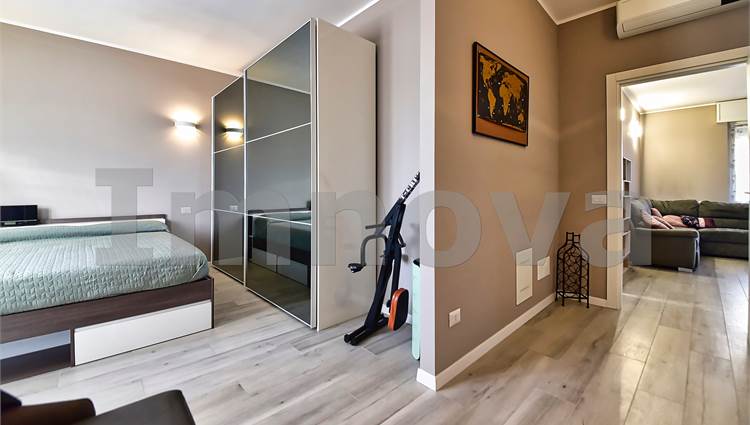 La soluzione si sviluppa su un unico livello ed è composta da ingresso sull' ampia zona living servita dal balcone, cucina di generose metrature con accesso al secondo balcone, due camera matrimoniali e doppi servizi. L' abitazione si presenta in ottime condizioni interne frutto di una totale recente ristrutturazione: caldaia a condensazione, infissi in pvc con isolamento termico, zanzariere, tapparelle elettriche, aria condizionata con pompa di calore, videocitofono e porta blindata. Grazie al piano e all' ottima esposizione gli ambienti sono molto luminosi e arieggiati. Il riscaldamento è autonomo e le spese condominiali sono minime.