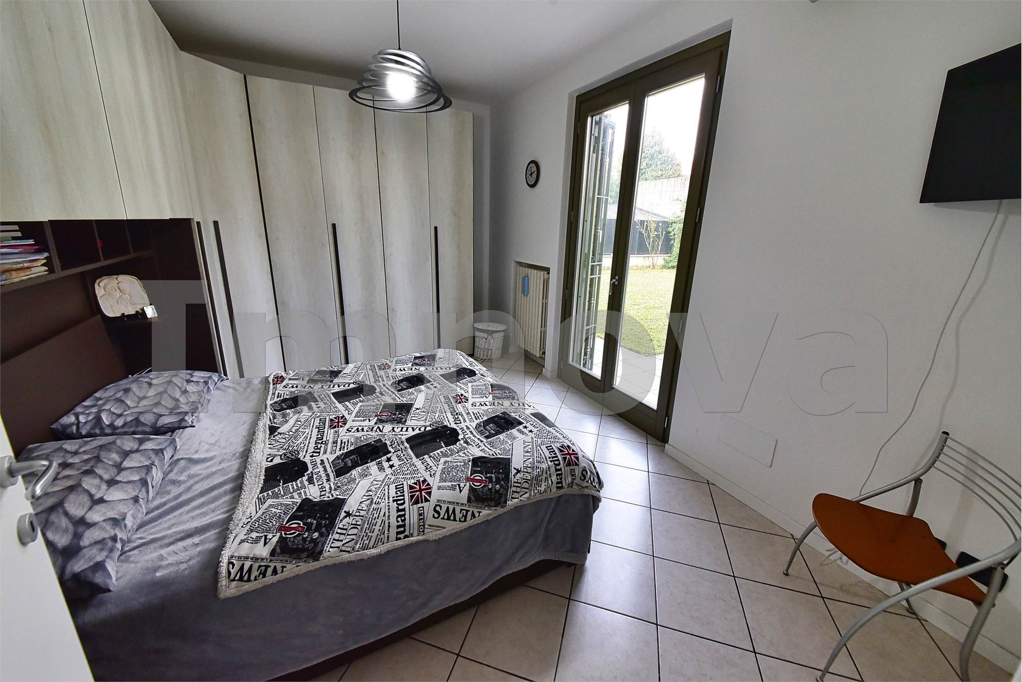 La soluzione, che gode anche di ingresso indipendente, è caratterizzata da ambienti ampi e luminosi che si suddividono in ingresso sul soggiorno, grande cucina abitabile, disimpegno che conduce alle due camere da letto e ai doppi servizi. Tutti i locali hanno accesso diretto al giardino che circonda i tre lati dell’ abitazione.