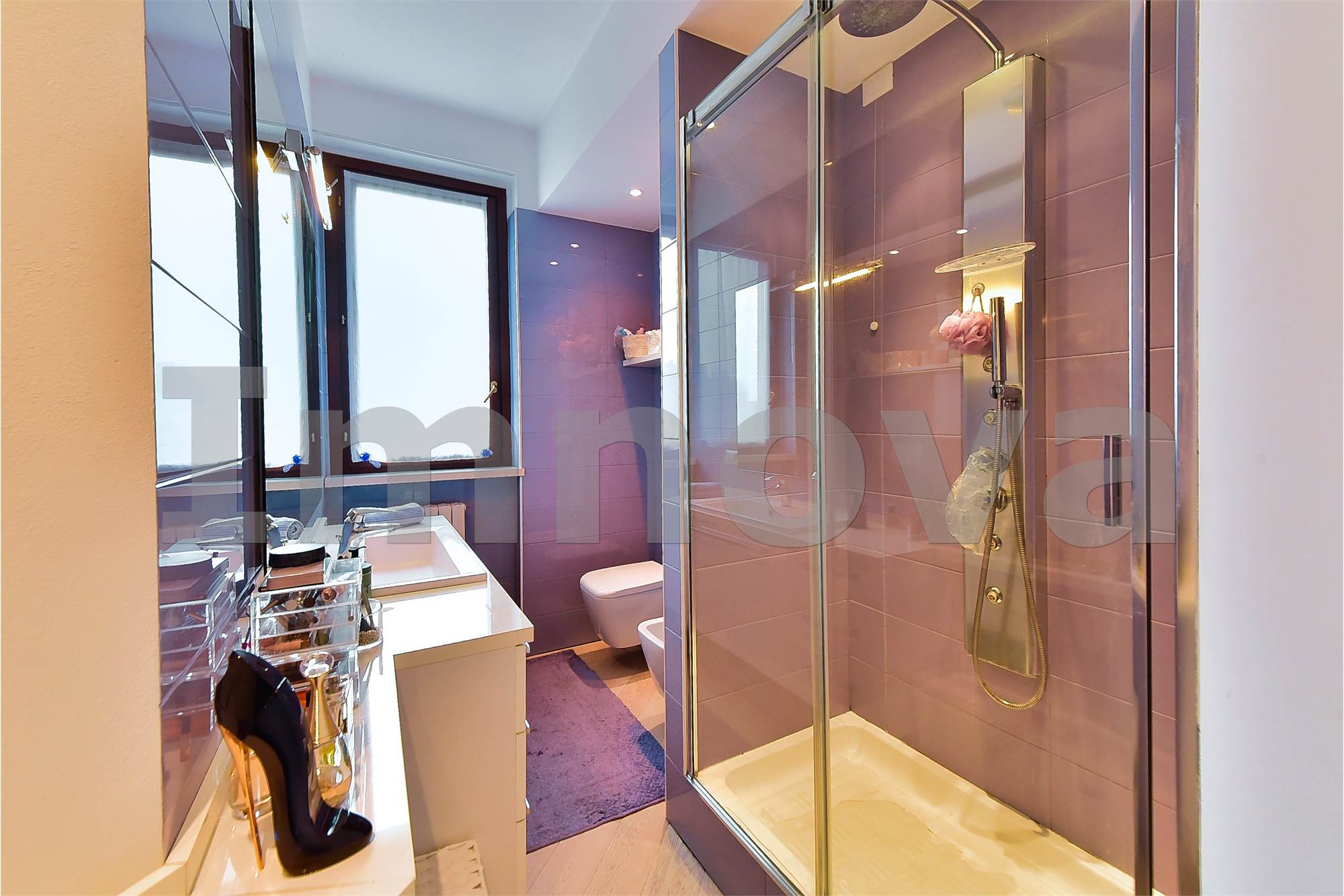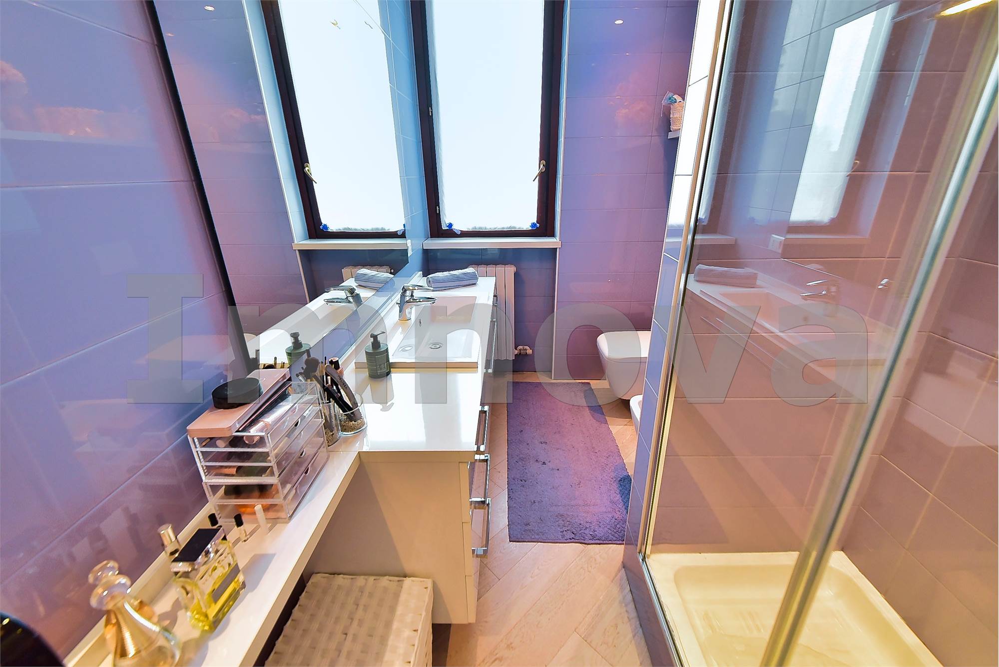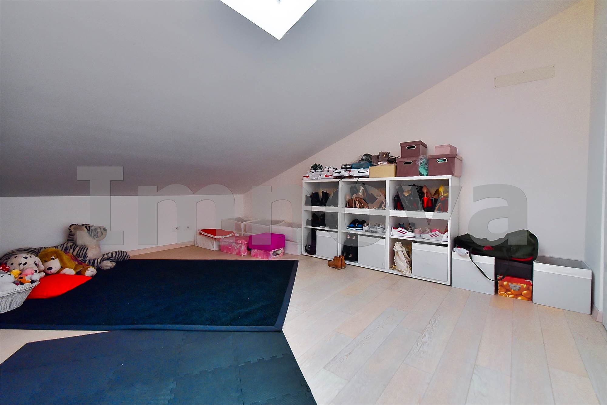 L' appartamento si trova al primo piano ed è disposto su due livelli: ingresso sul soggiorno con ampio balcone, cucina abitabile, camera da letto e bagno con doccia e sanitari sospesi. Al piano superiore abitabile troviamo due camere, il grande bagno e il terrazzo.